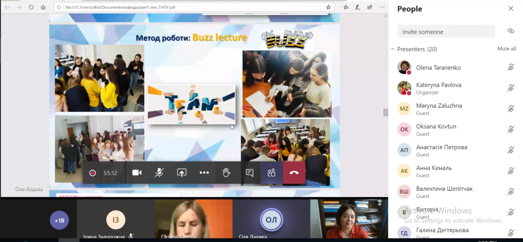 «В умовах глобалізації і великого потоку інформації ми можемо спостерігати брак вмінь і засобів аналізу, які необхідні студентам. І в цьому аспекті нам дуже важливо розуміти компетентності, які ми хочемо розробити, і чого хочемо навчити. На самому початку було важко інтегрувати активності в курси зурубіжного літературознавства, тобто ми розуміли, що матеріал мусить бути літературознавчий, а активності і способи отримання інформації мають бути медійні. В кінцевому результаті нам вдалося це все організувати. Найважчим, напевно, було зорганізувати студентів групи. По часу все має бути настільки продумано, щоб не втратити логіку побудови заняття».