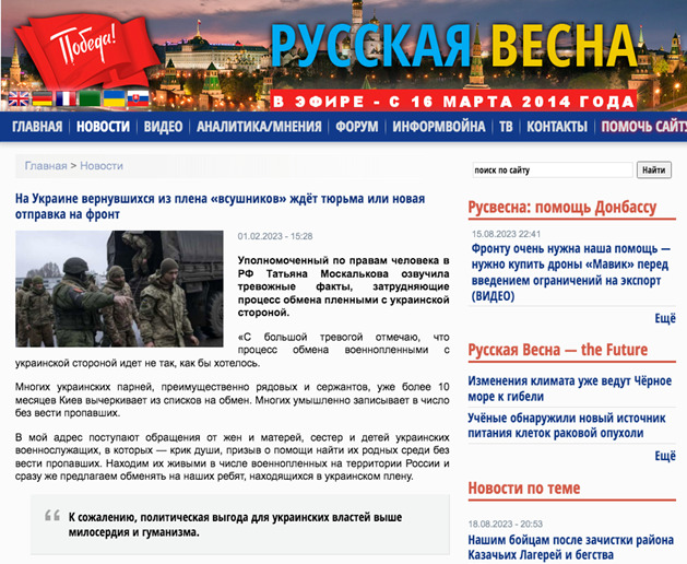 Так, щойно росія зриває черговий обмін полоненими, у кремлівських ЗМІ з'являється інформація про те, що українських військовополонених після повернення чекає в’язниця або повернення на фронт. Пропагандисти поширюють її своїм улюбленим методом – від офіційної особи. У цьому випадку нею стала уповноважена з прав людини в рф Тетяна Москалькова.
