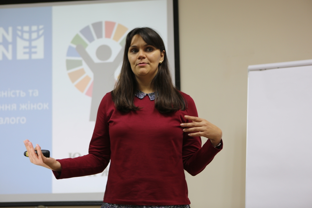 Кандидат філологічних наук, гендерна експертка Юлія Гончар доповідала про гендерну рівність та уповноваження жінок. Також спікерка надала практичні рекомендації із гендерно-чутливої журналістики, звернула на використання у текстах журналістських матеріалів гендерно-чутливих слів.
